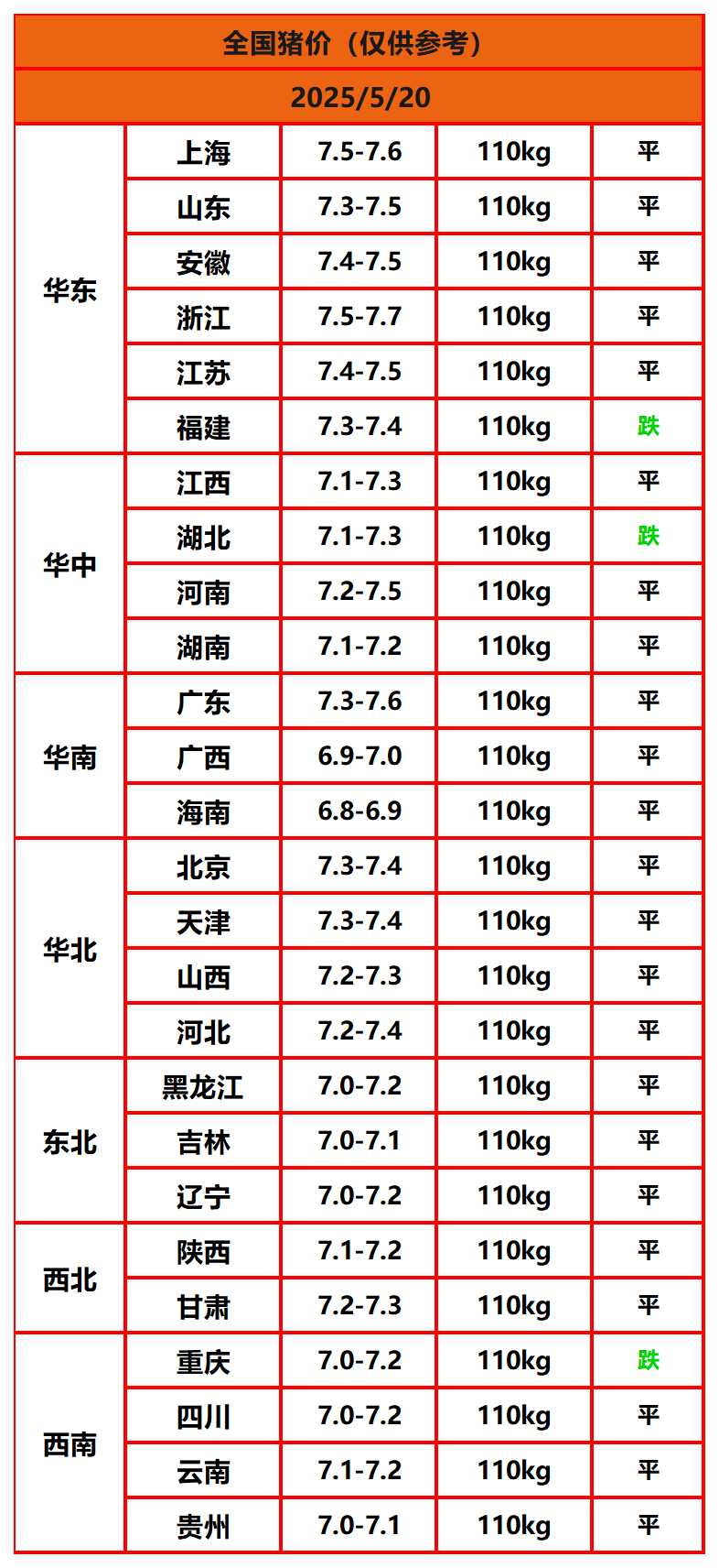 今日猪价 | 2025年5月20日全国猪价行情一览表!