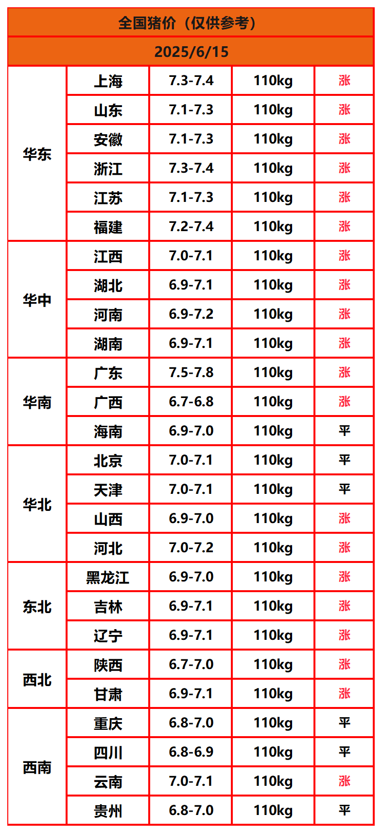 今日猪价 | 2025年6月15日全国猪价行情一览表!